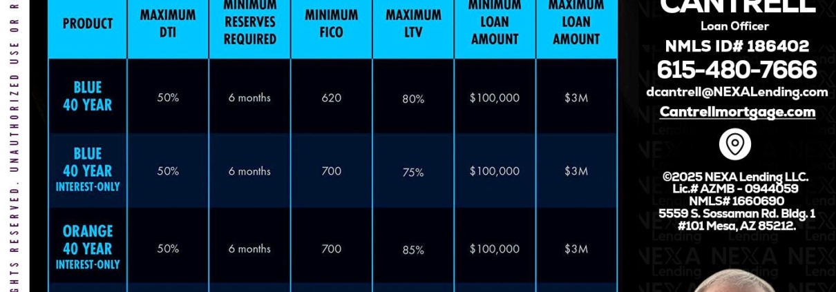 Hi, my name is David Cantrell. I’m a Loan Officer with NEXA Lending LLC., offering personalized mortgage solutions, fast customized quotes, great rates and service with integrity.