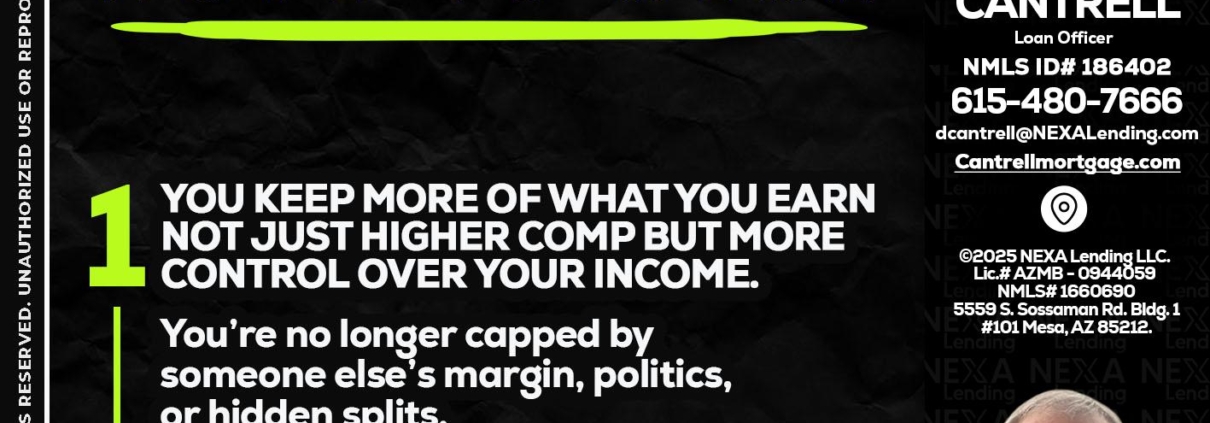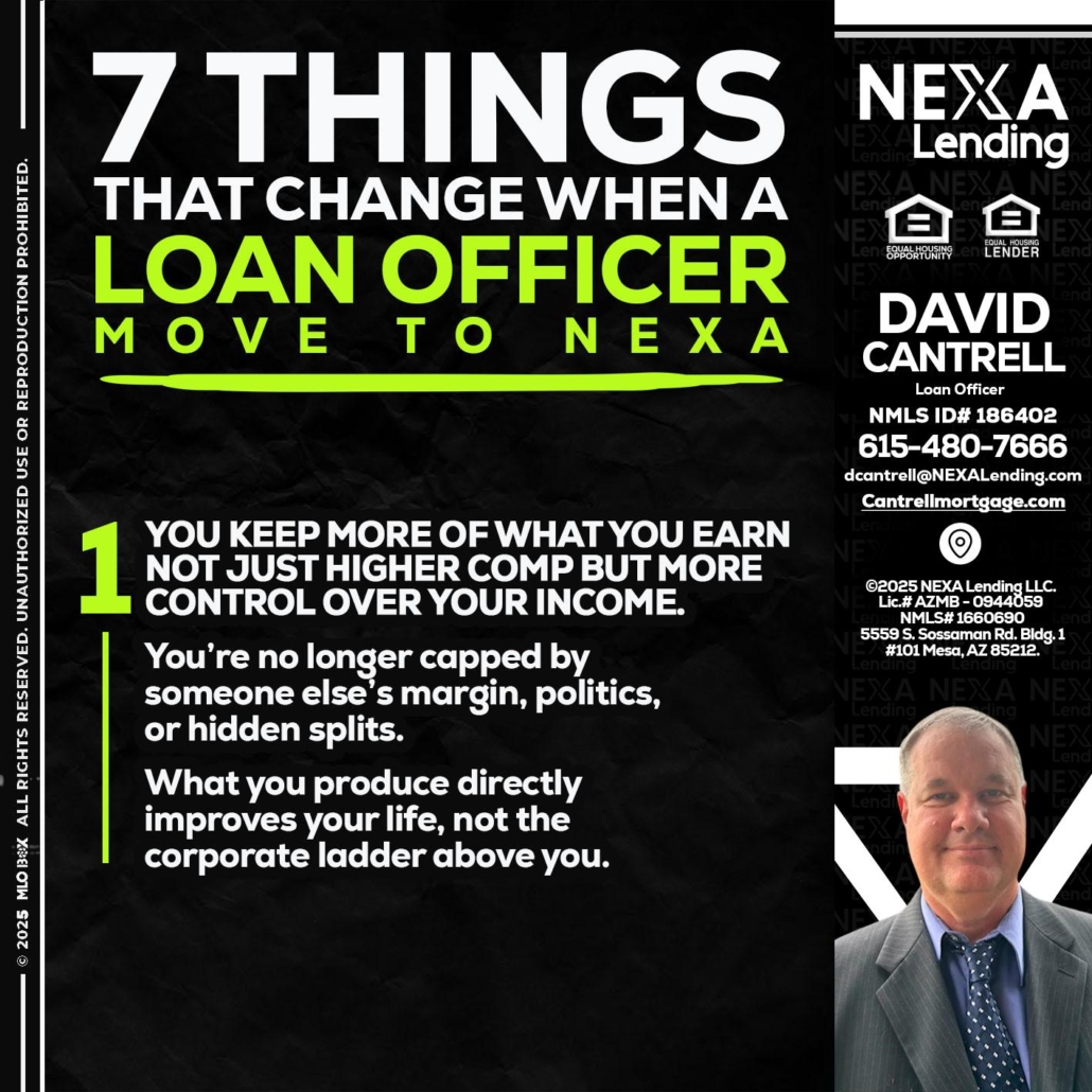 Hi, my name is David Cantrell. I’m a Loan Officer with NEXA Lending LLC., offering personalized mortgage solutions, fast customized quotes, great rates and service with integrity.