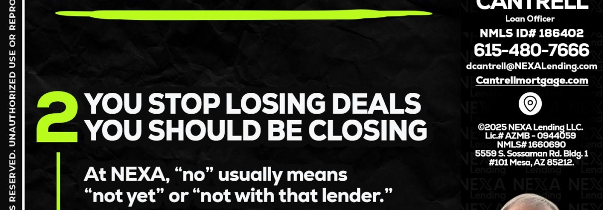 Hi, my name is David Cantrell. I’m a Loan Officer with NEXA Lending LLC., offering personalized mortgage solutions, fast customized quotes, great rates and service with integrity.