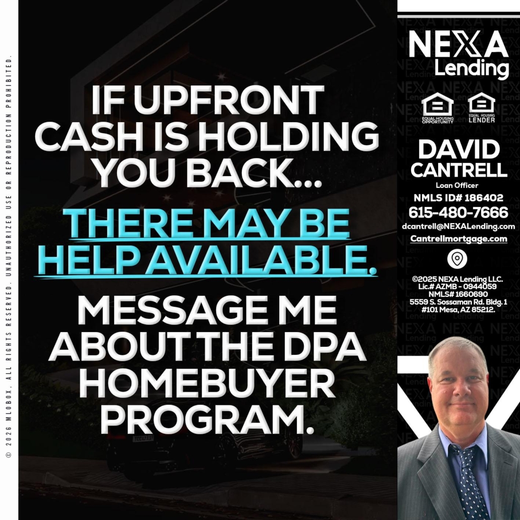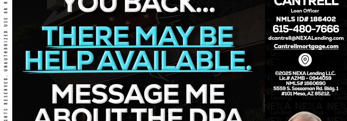 Hi, my name is David Cantrell. I’m a Loan Officer with NEXA Lending LLC., offering personalized mortgage solutions, fast customized quotes, great rates and service with integrity.