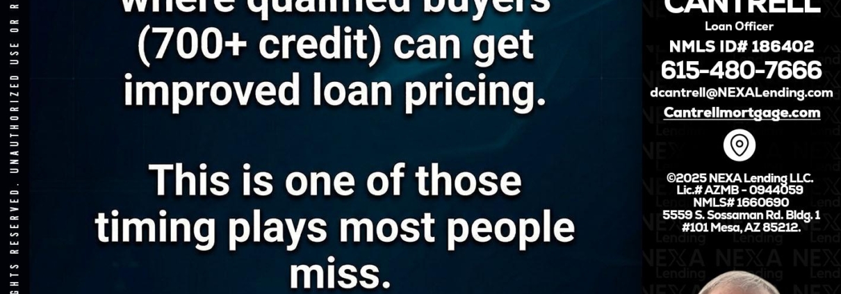 Hi, my name is David Cantrell. I’m a Loan Officer with NEXA Lending LLC., offering personalized mortgage solutions, fast customized quotes, great rates and service with integrity.