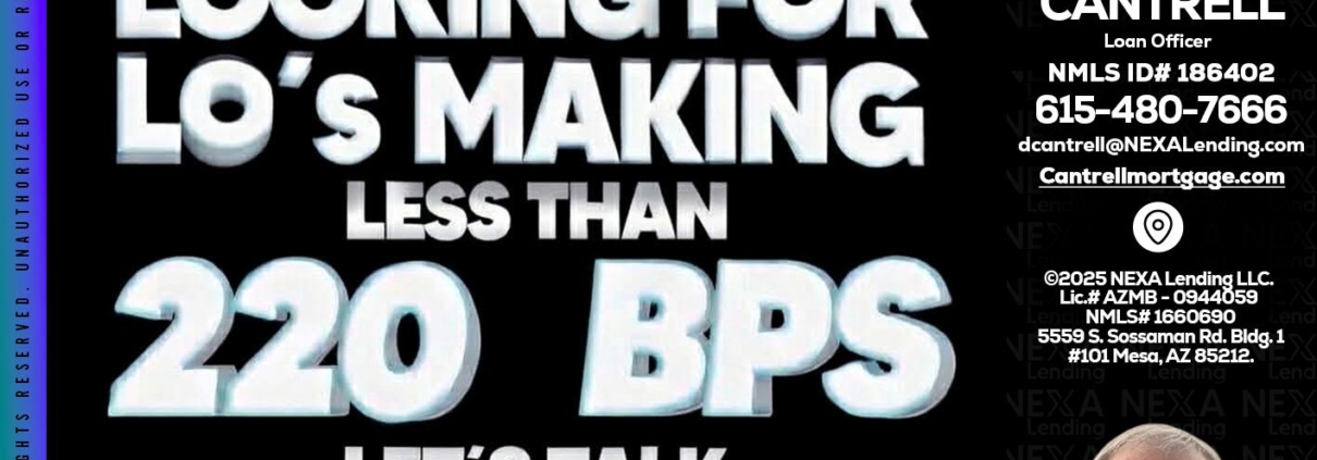 Hi, my name is David Cantrell. I’m a Loan Officer with NEXA Lending LLC., offering personalized mortgage solutions, fast customized quotes, great rates and service with integrity.
