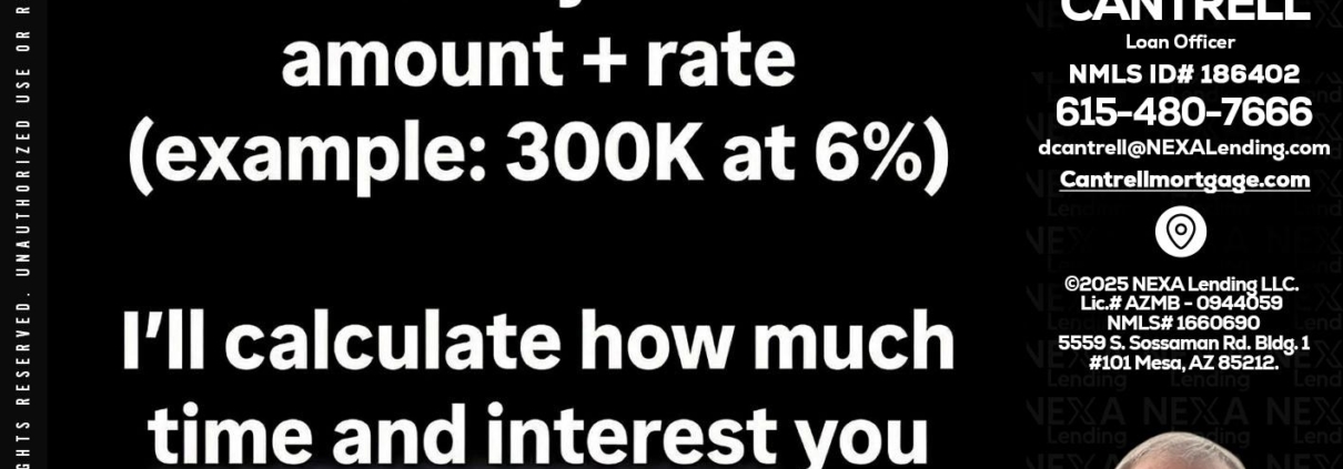 most owners - David Cantrell -Loan OfficerHi, my name is David Cantrell. I’m a Loan Officer with NEXA Lending LLC., offering personalized mortgage solutions, fast customized quotes, great rates and service with integrity.
